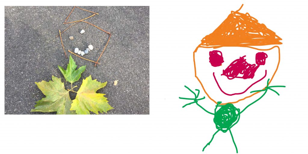 Die Geschichte von Hörbe und seinen Zwergenfreunden begleitet uns durch den Herbst. Wir waren im Wald und haben dort mit Naturmaterialien Zwergen & Höhlen gestaltet. Die Kinder erstellen ein dreiseitges Buch, welches ein Portrait des «Autors», ein Zwergengesicht aus Naturmaterialien sowie ein gemaltes Zwergengesicht beinhaltet.