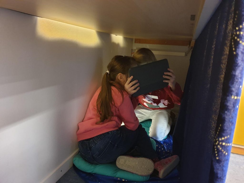 Herausfordernd ist die Zusammenarbeit in den Gruppen. Die 1. Klässler:innen müssen das zuerst üben. Es muss stets klar geregelt sein, welches Kind gerade seine iPad-Zeit hat. Vor den Sommerferien und somit nach der Waldschule werden die Bücher den Eltern präsentiert.