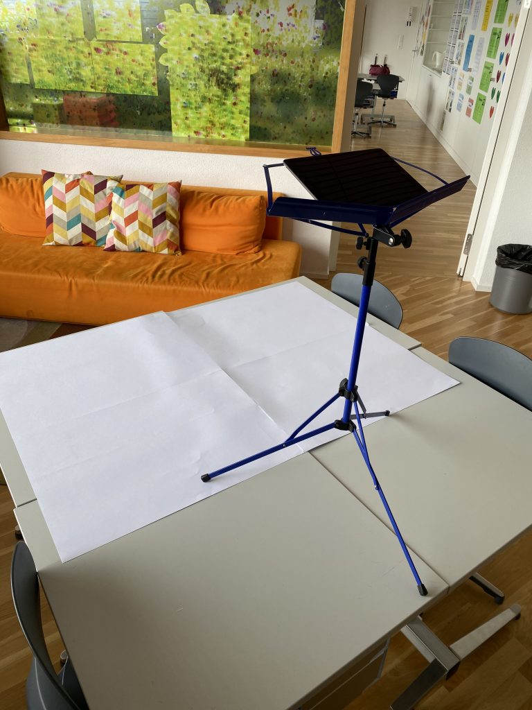 - Das Legen und Sprechen für die Aufnahmen wird mehrmals ohne iPad geübt. Die Aufgaben der Gruppenmitglieder werden geklärt. Anschliessend folgen die Aufnahmen mit dem iPad. Dazu zieht sich die Gruppe in einen eigenen Raum zurück.