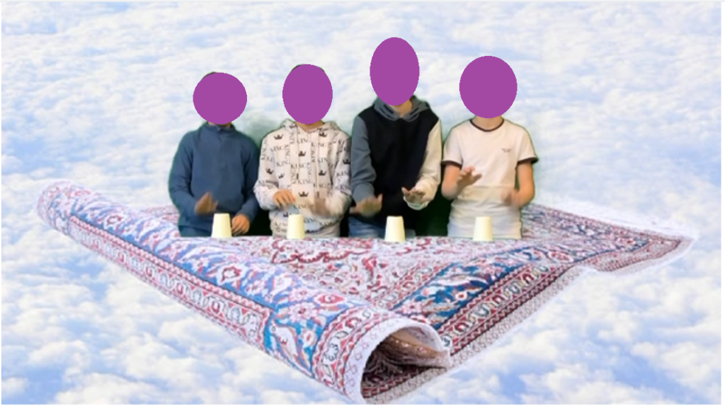 - Sobald die Kinder mit der App vertraut sind, werden fixe Arbeitsplätze eingerichtet, wo die Kinder die Begleitung mit den Cups üben und das Video aufnehmen können.